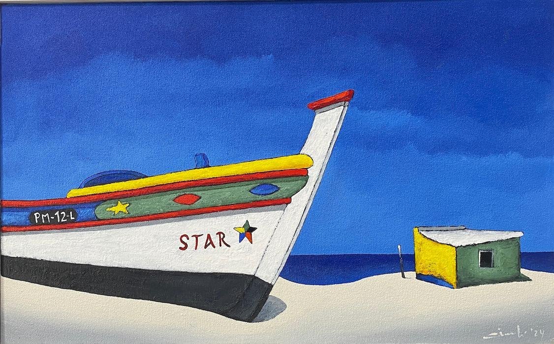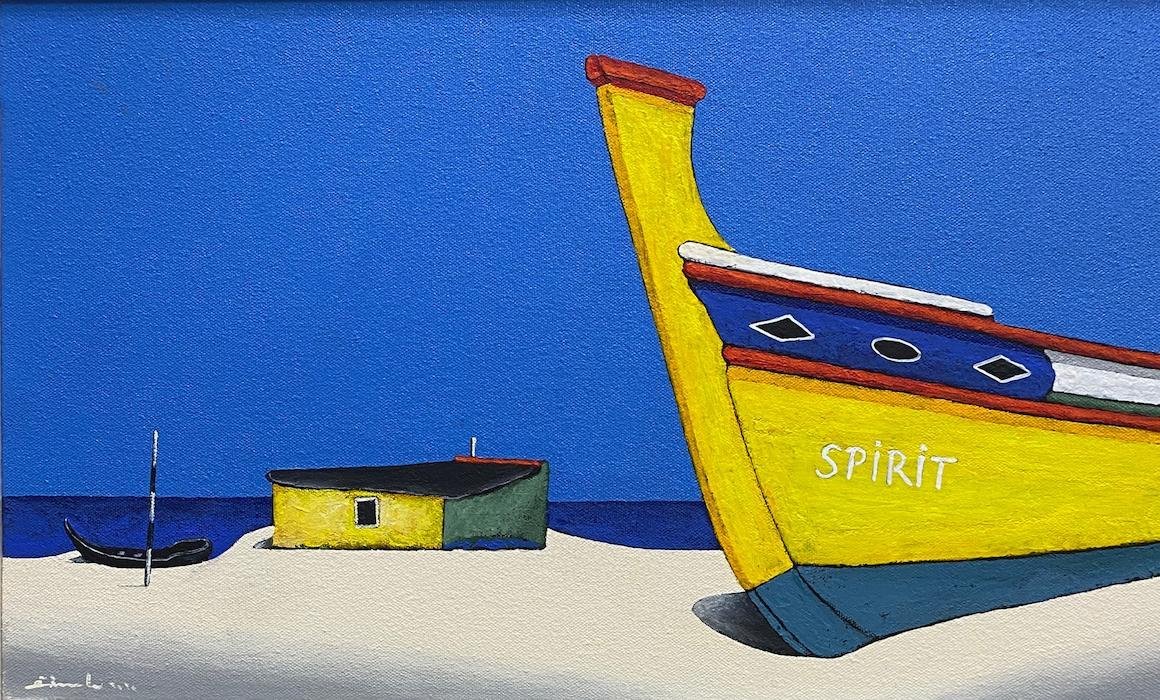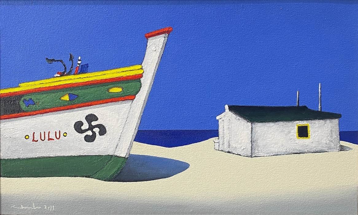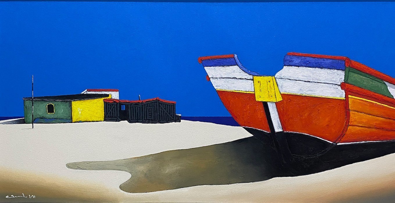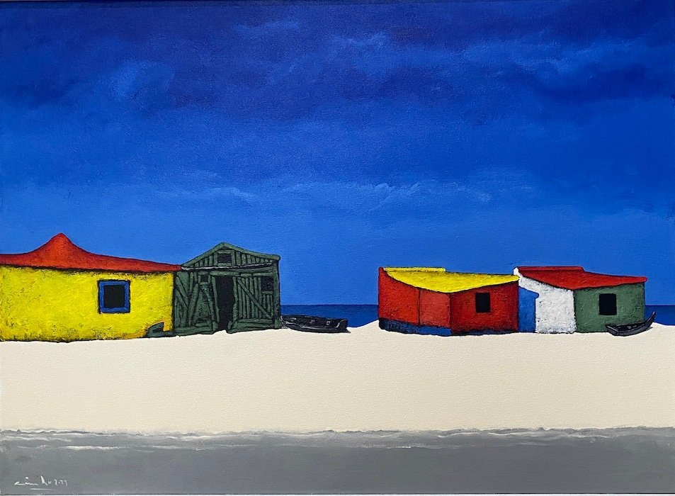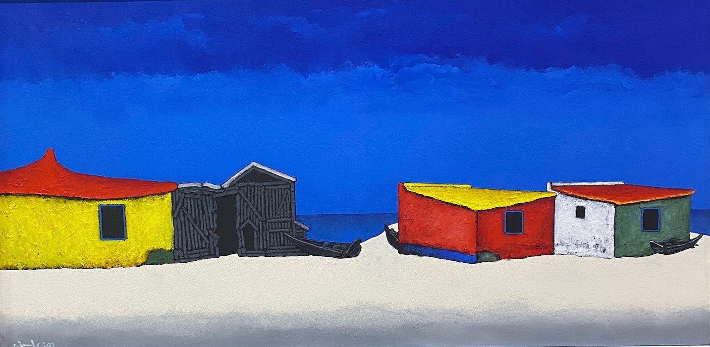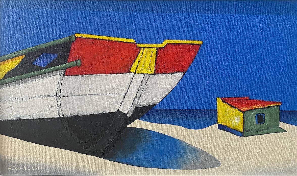 He paints brightly, fresh audacious images of the local fishing boats and brightly painted huts.