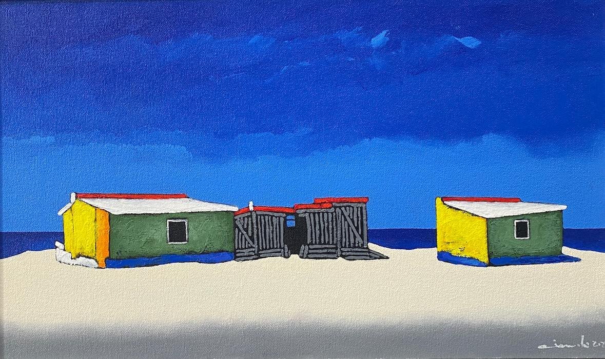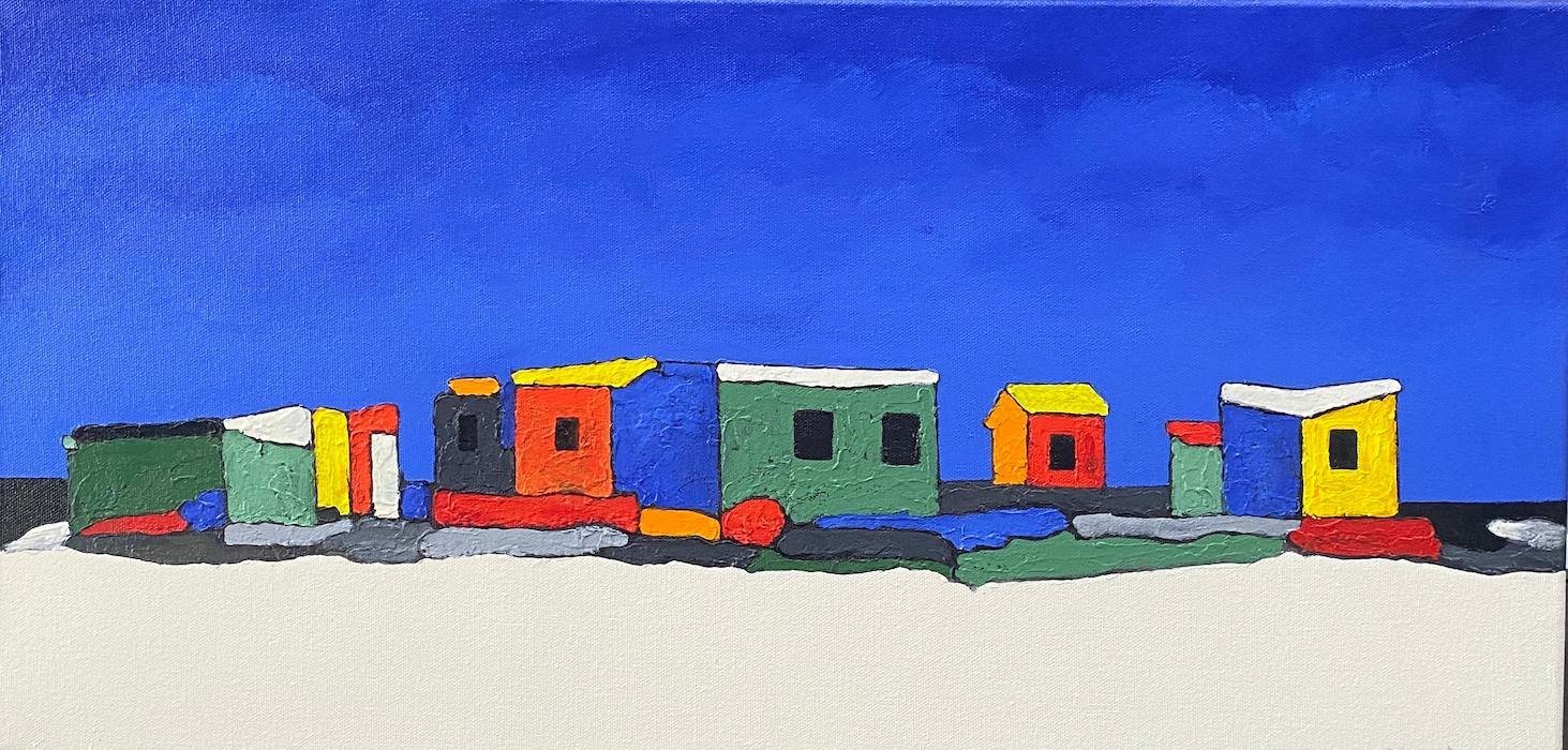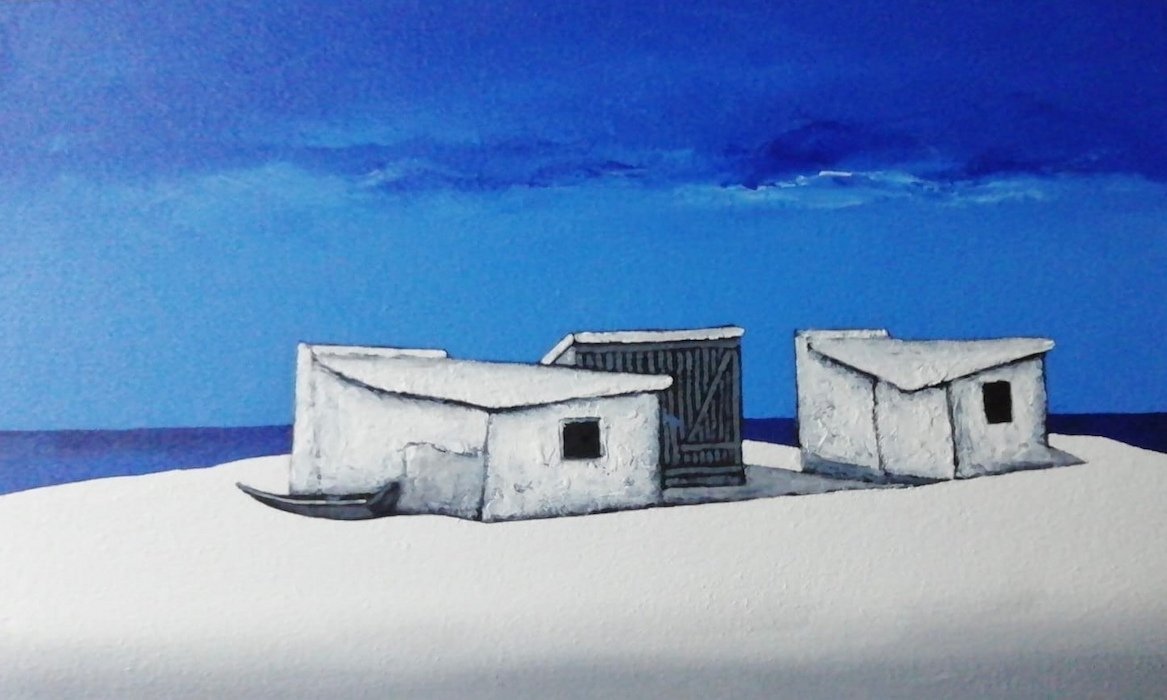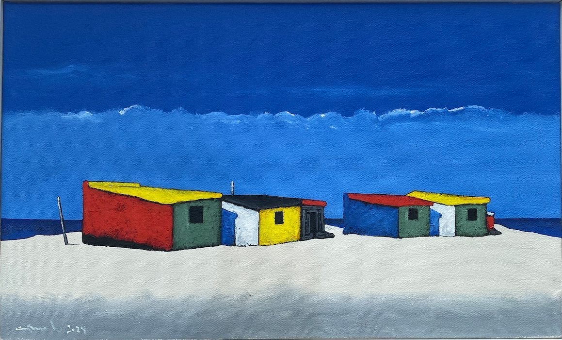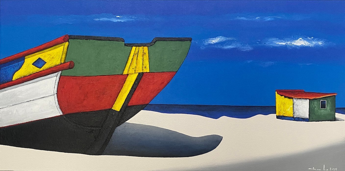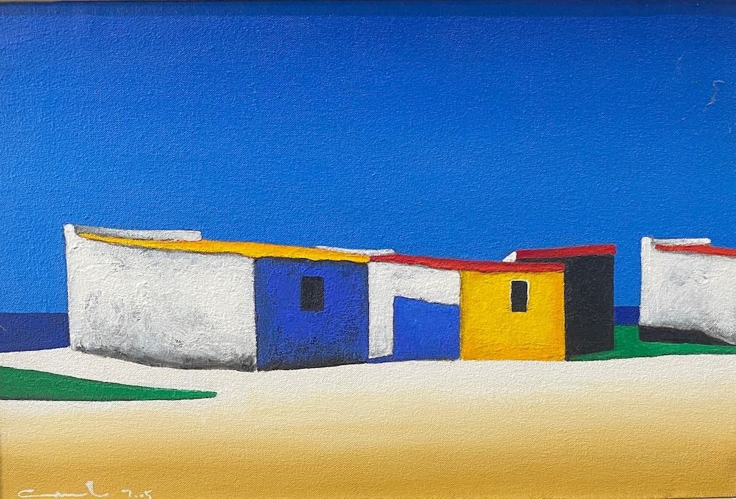He paints brightly, fresh audacious images of the local fishing boats and brightly painted huts.