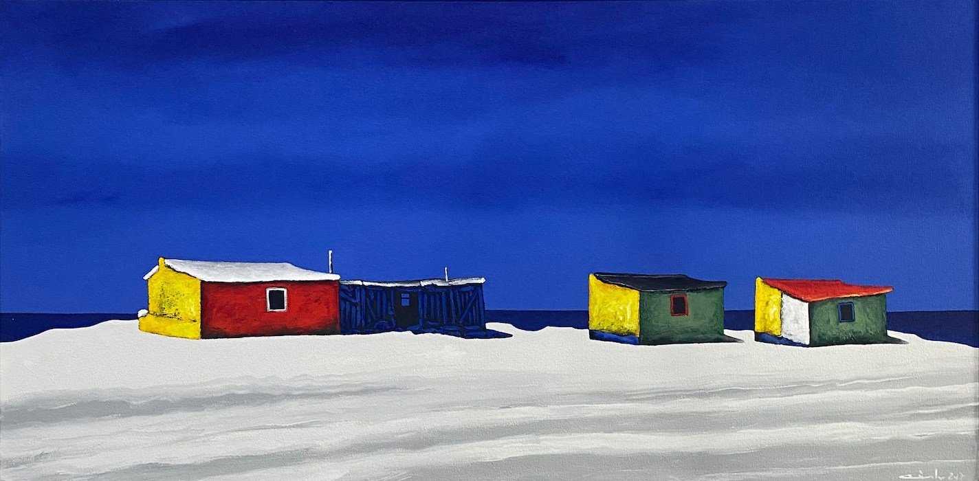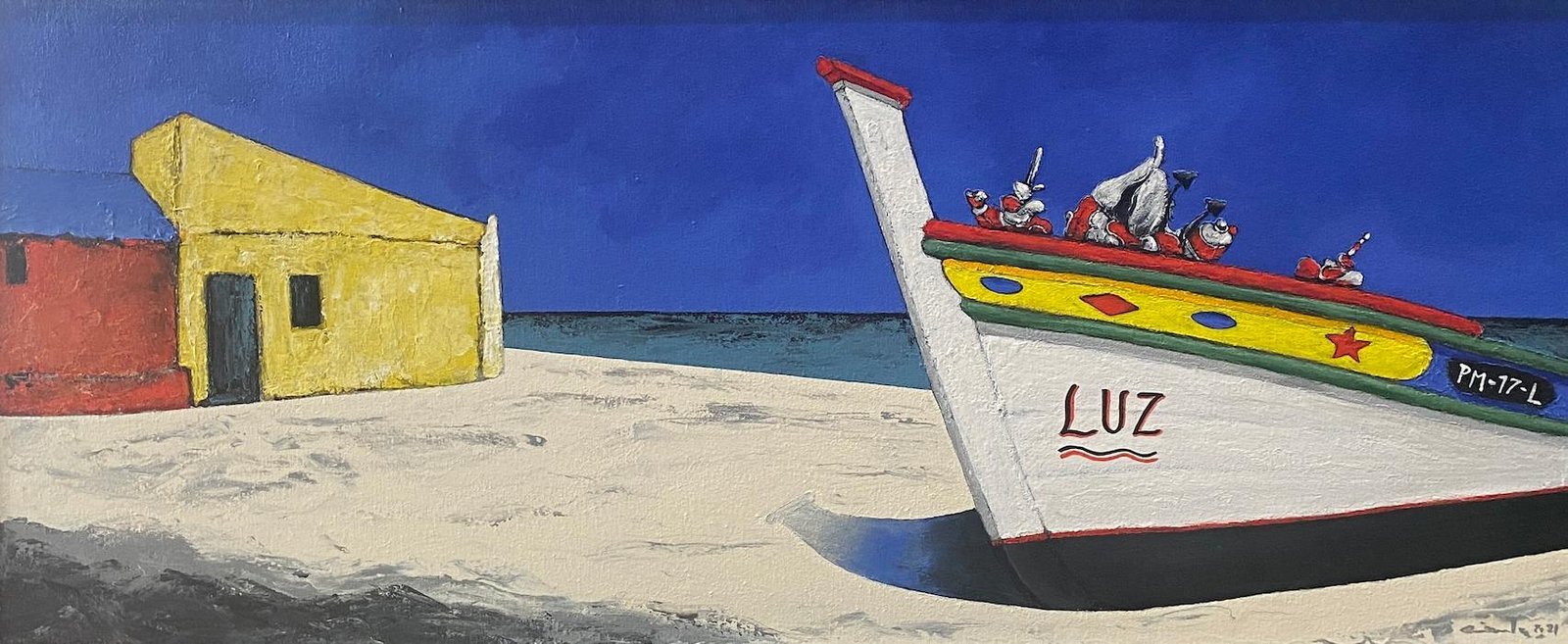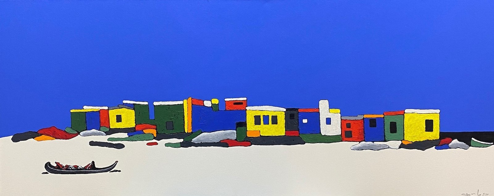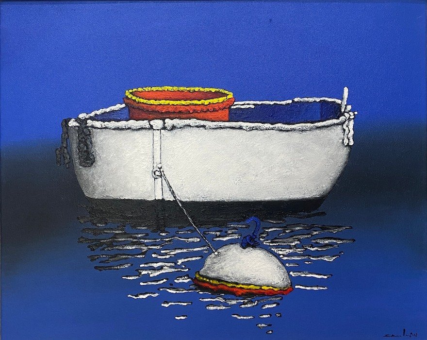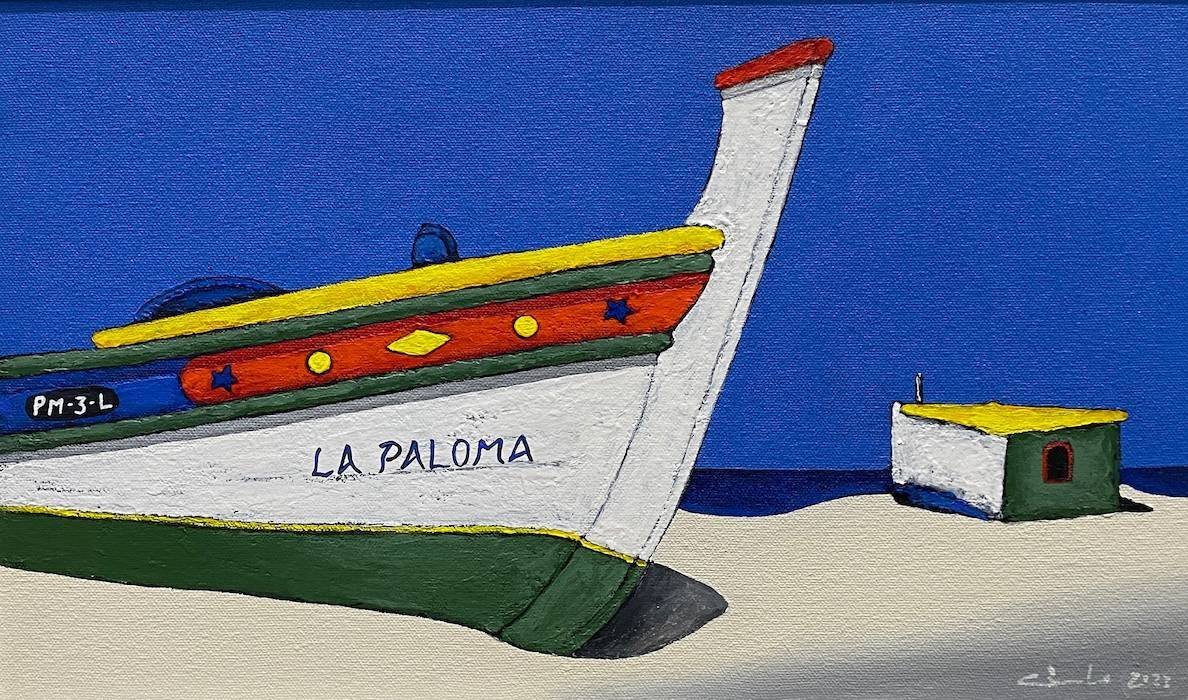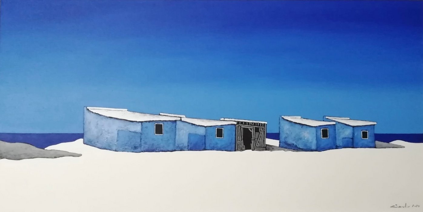 He paints brightly, fresh audacious images of the local fishing boats and brightly painted huts.