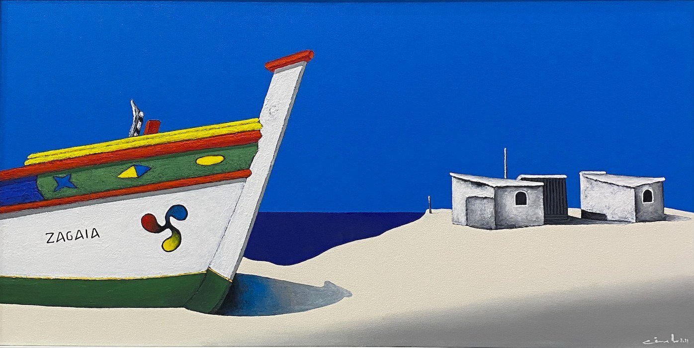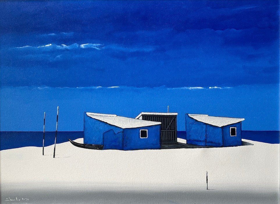 His frequent travels to the Algarve’s Ria Formosa is where he gets his inspiration to paint the sandbar islands.