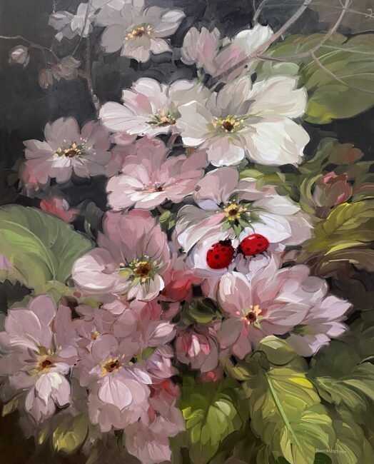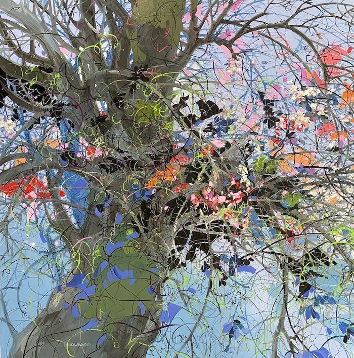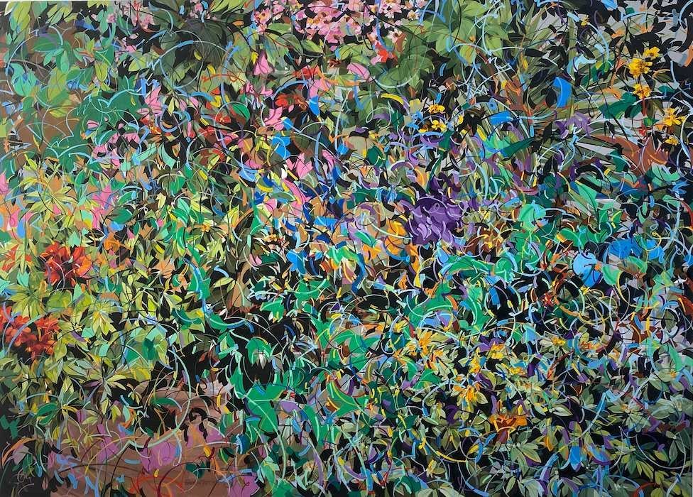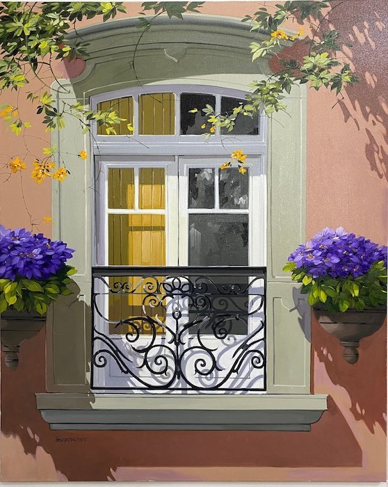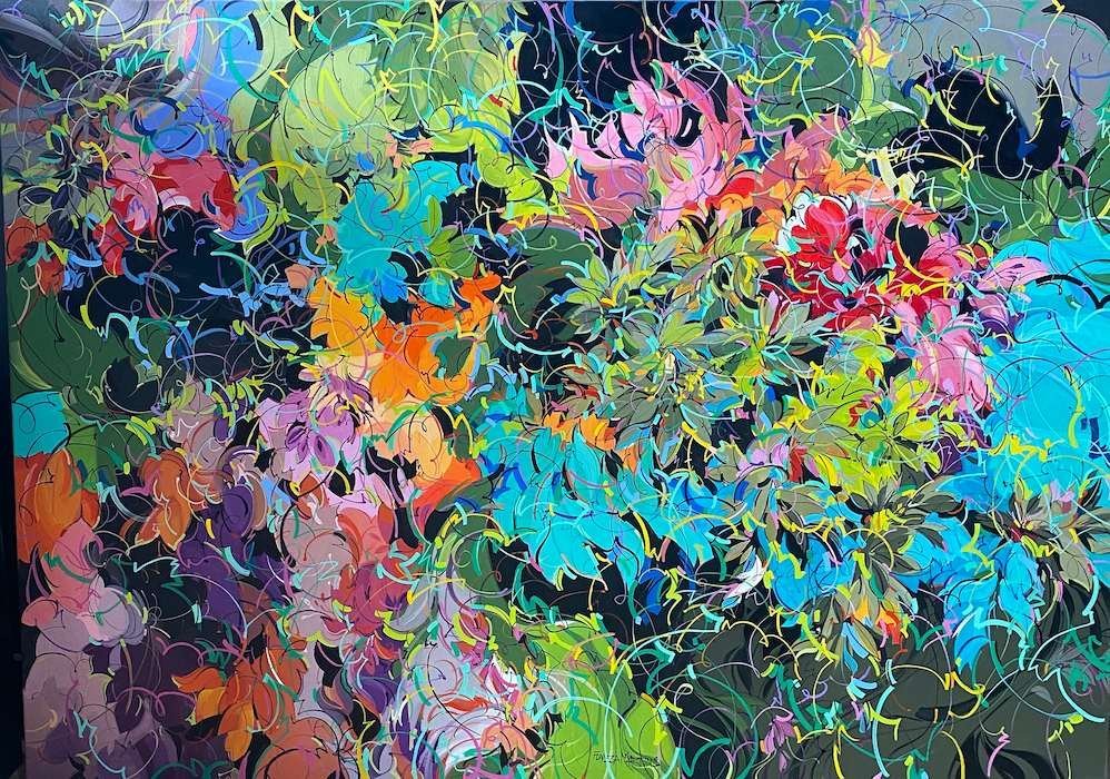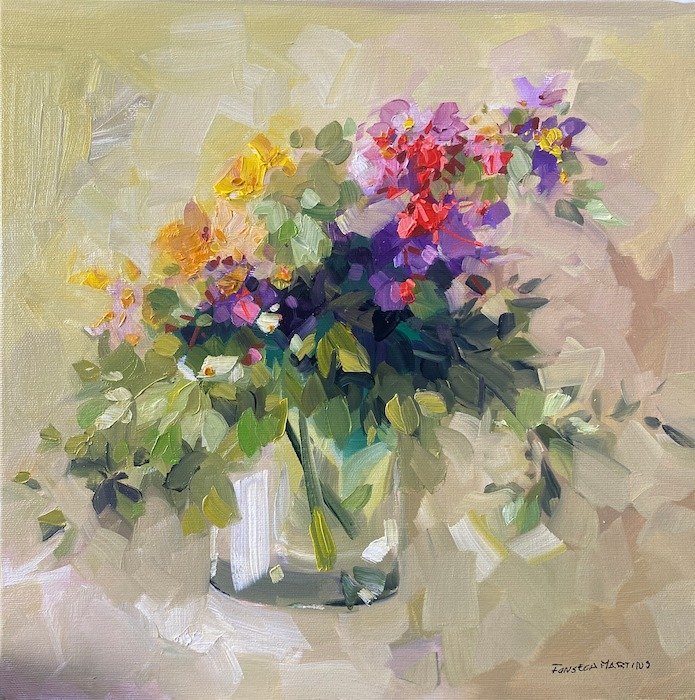 His most recent oil paintings burst with vibrant floral colours and can transform any room into a bright, Mediterranean paradise.