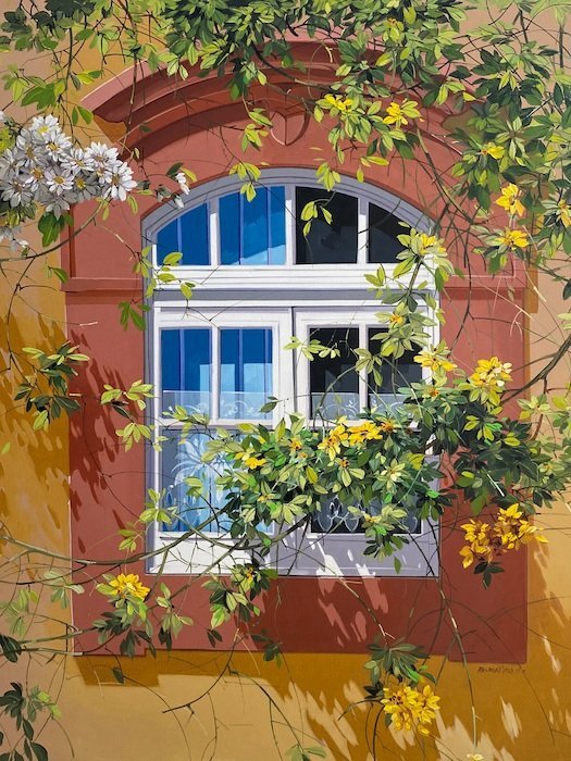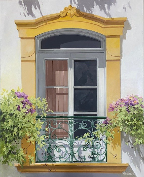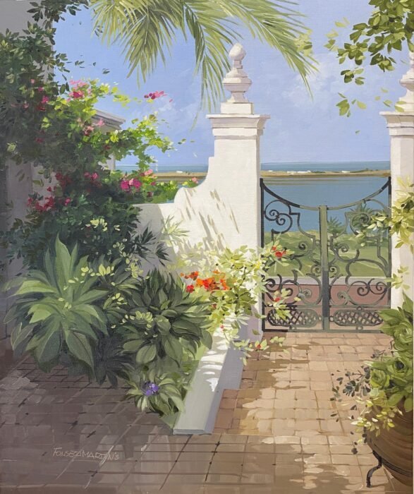 Adept in numerous media including painting, carving, sculpting and ceramics he is most recognised for his work as a painter. His artworks are mostly themed around urban nature and architecture, such as floral windows, patios and house interior scenes. Fonseca Martins also creates beautiful textured acrylics, contemporary sculptures and ceramic tiles.