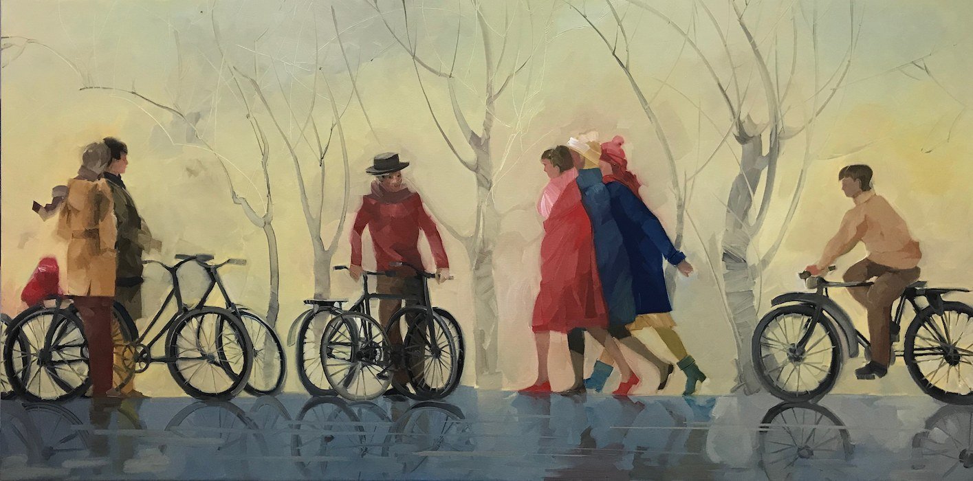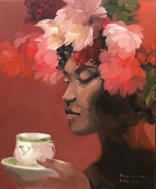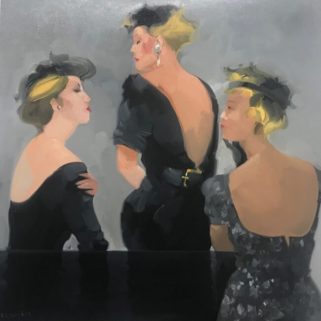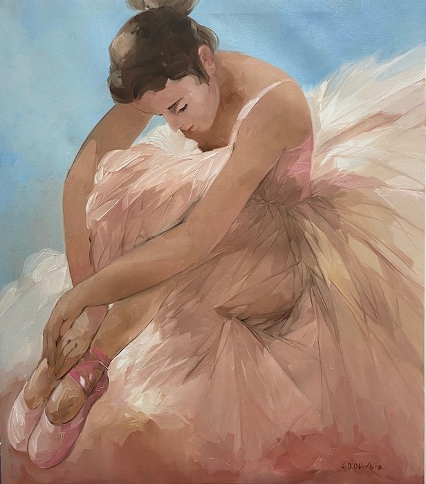 Karen’s early career was in the beauty industry and it was here she became fascinated with the human form. Specializing in oil, her paintings delicately capture human movement and expression using sensitive, flowing brush strokes.