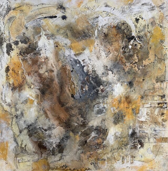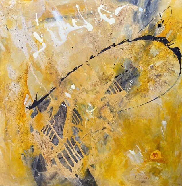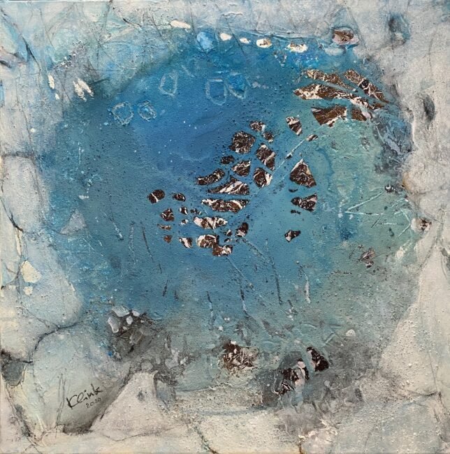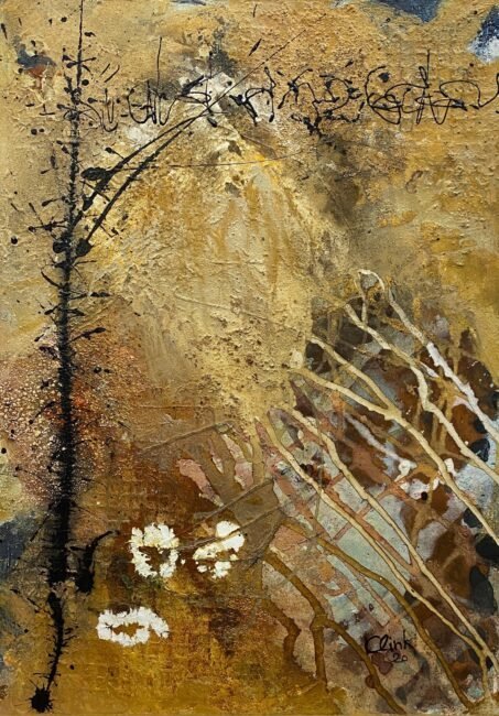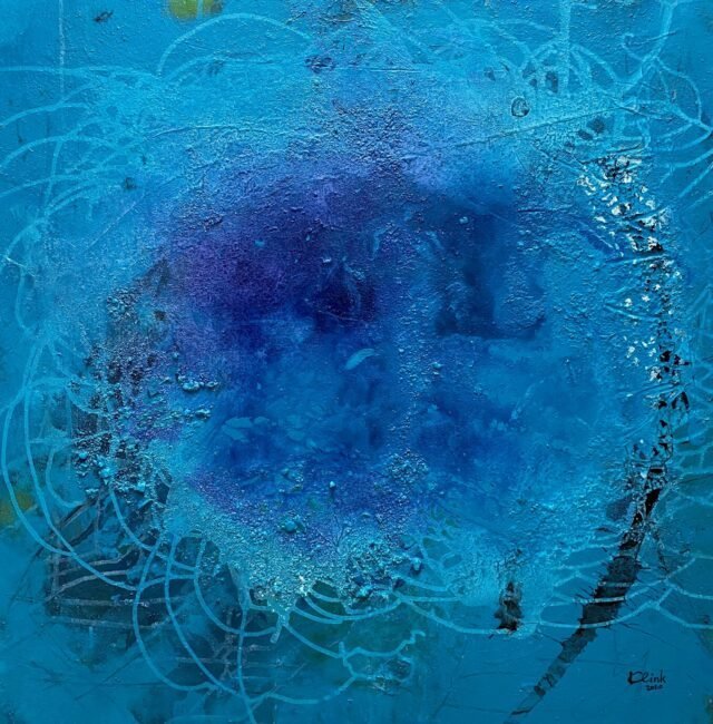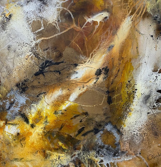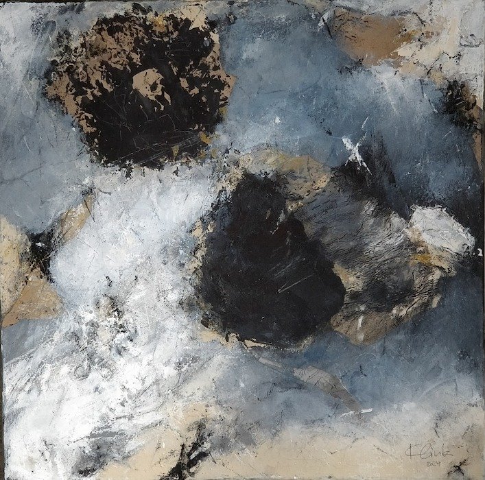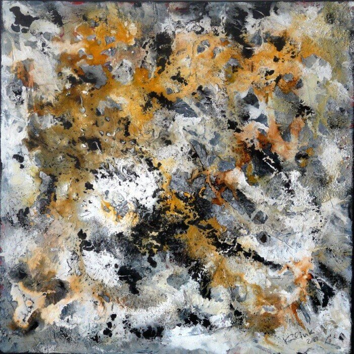 Layer by layer she moves from creative chaos to exciting compositions, creating images with depth, space and density. Her visions and themes grew towards abstract work. This gives the viewer the freedom for their own interpretation.