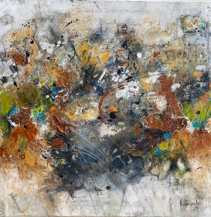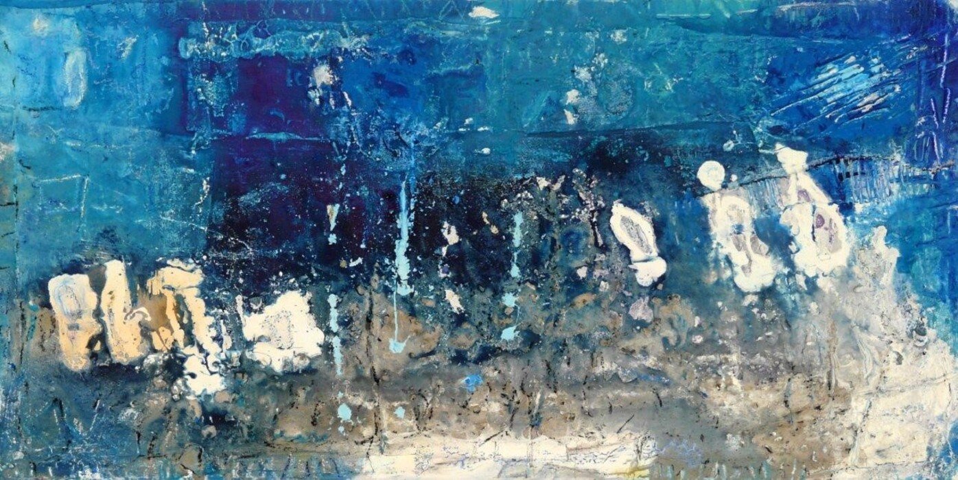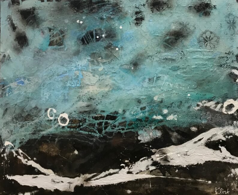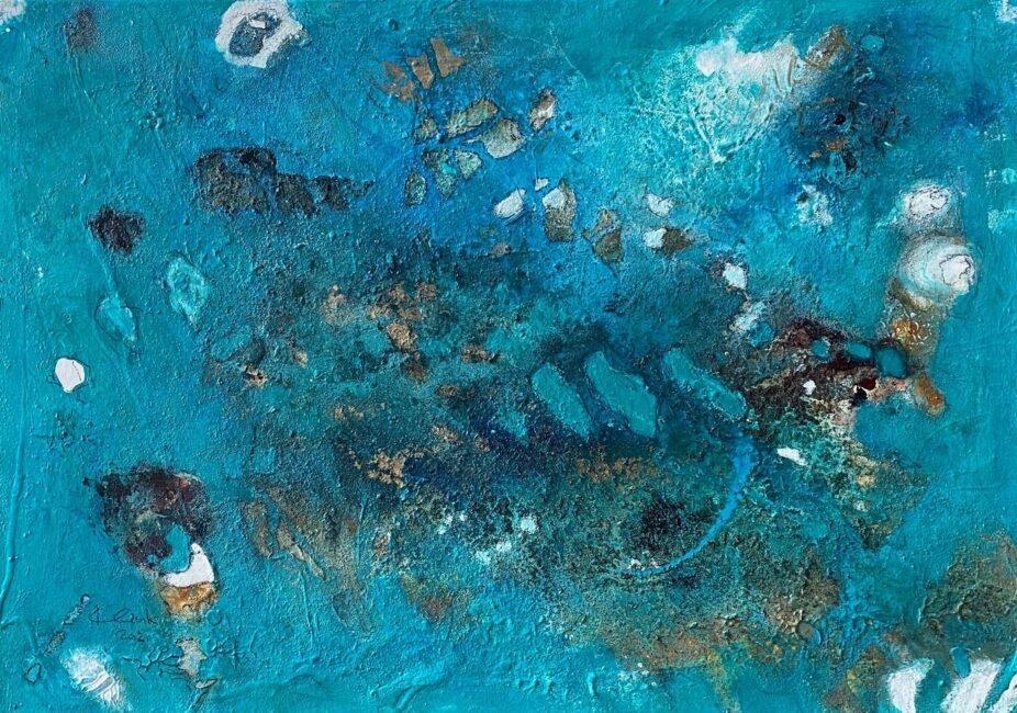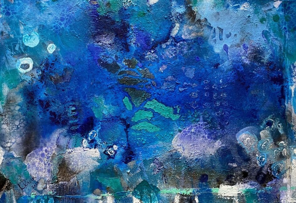 Layer by layer she moves from creative chaos to exciting compositions, creating images with depth, space and density. Her visions and themes grew towards abstract work. This gives the viewer the freedom for their own interpretation.