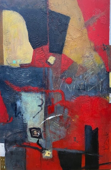 Her paintings show geometric and playful shapes, rough structures, earthy natural and strong shades. From the beginning nothing is fixed. Her work is progressive and characterized through emotions, intuition, spontaneity as she tries to live out moods, inner visions, sensations or the pure energy on the canvas.