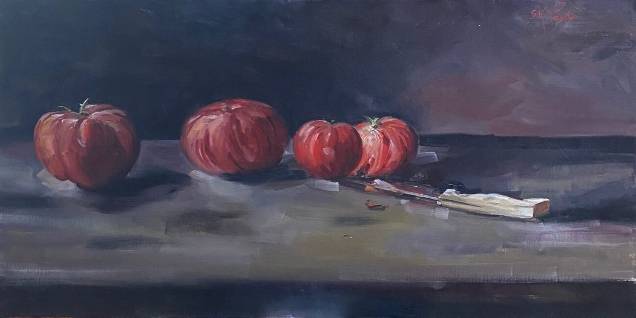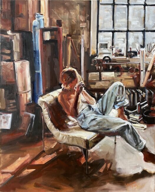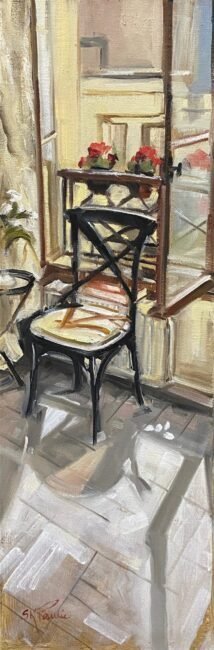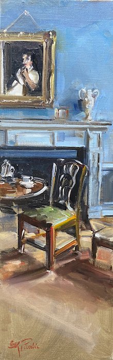 Sylvie specializes in oil focusing on portraiture, still life and interior views throughout daily life. Her work, loosely echoing the styles of old masters she has been inspired by, conveys her love of colour, light and shadow providing the viewer with a painting that stimulates the senses.
